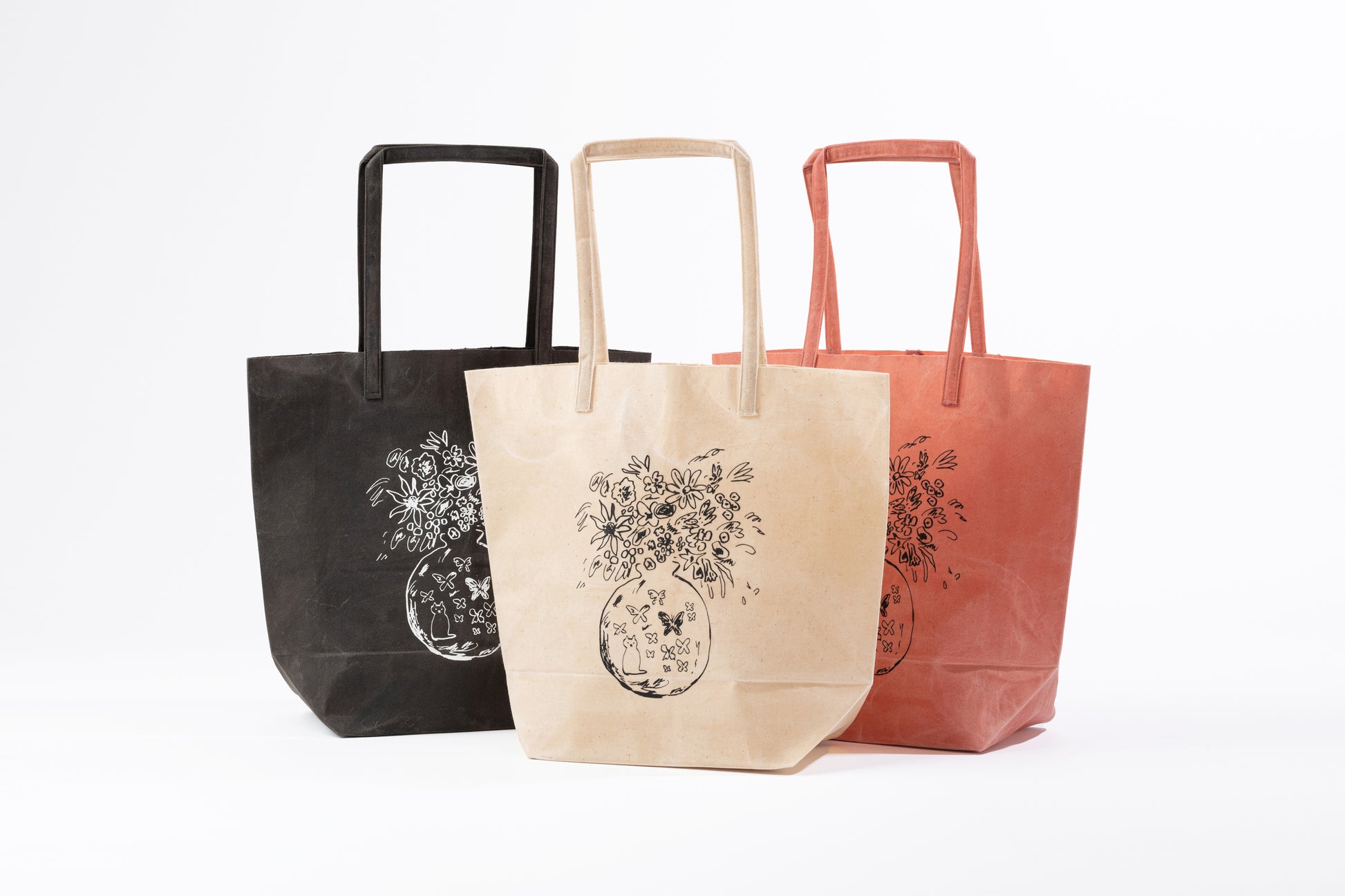 蝋引き鞄を制作するKazumi Takigawaと平子雄一のコラボレーショントートバッグ