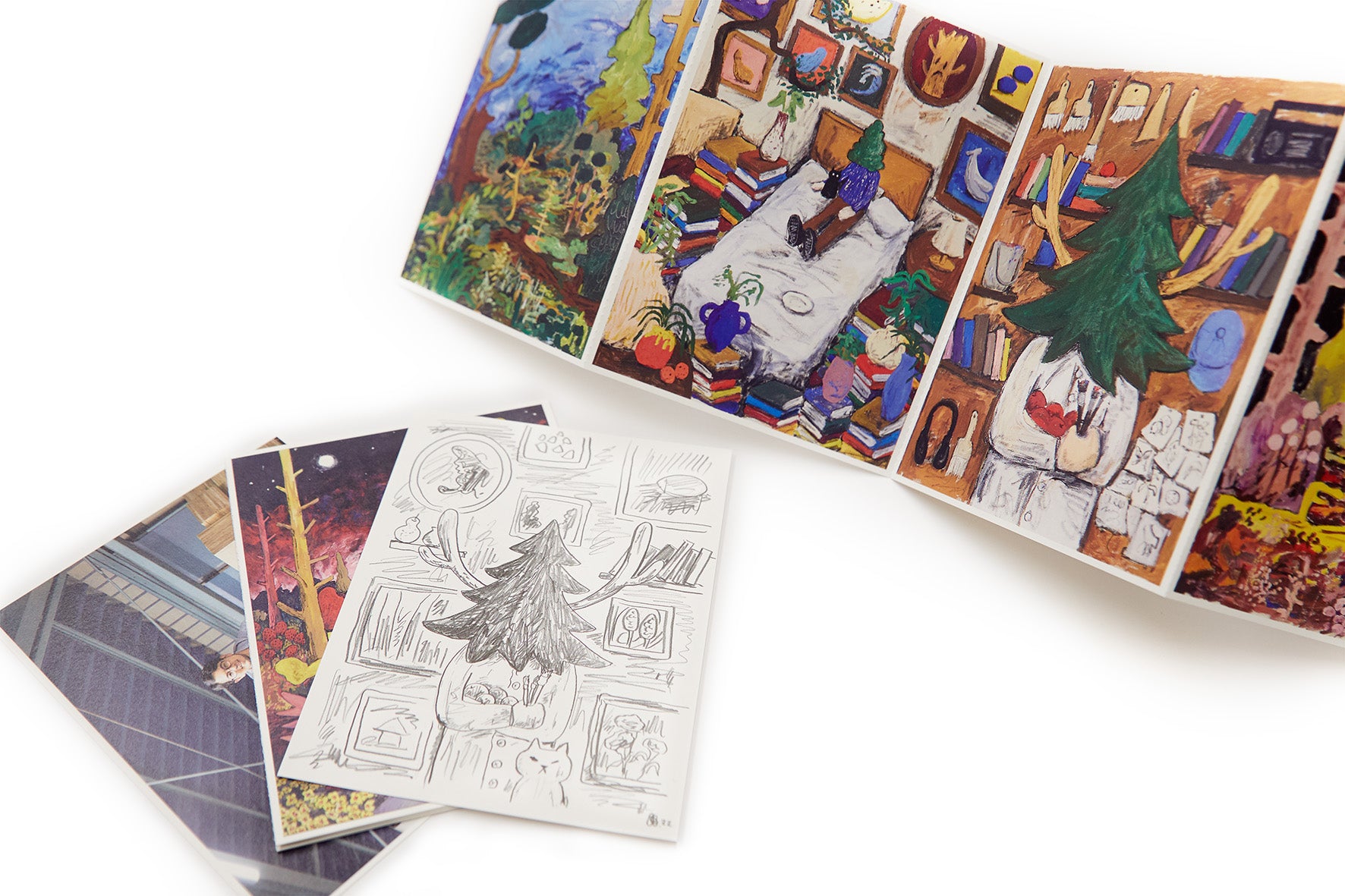 「inheritance, metamorphosis, rebirth 」と「inheritance, metamorphosis, rebirth への習作」の各4枚綴りのポストカード他 10枚セット(封筒付き)